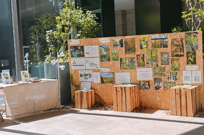 また、展示コーナーでは、大手町の森で確認された植物や動物の写真を紹介。
